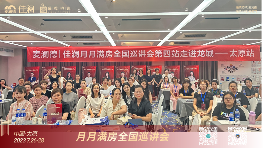 月月滿房全國巡講會第四站-走進龍城 2023年7月26日—28日,由南京麥瀾德|佳瀾攜手曦尊咨詢主辦,涵眾管理研究院&傾世之謎科技產康&藍絲帶健康管理有限公司&武漢盛世美禾集團&杭州華楹生物科技有限公司協辦的月月滿房全國巡講會——太原站圓滿落幕。來自以山西太原為主的各地月子會所及產...