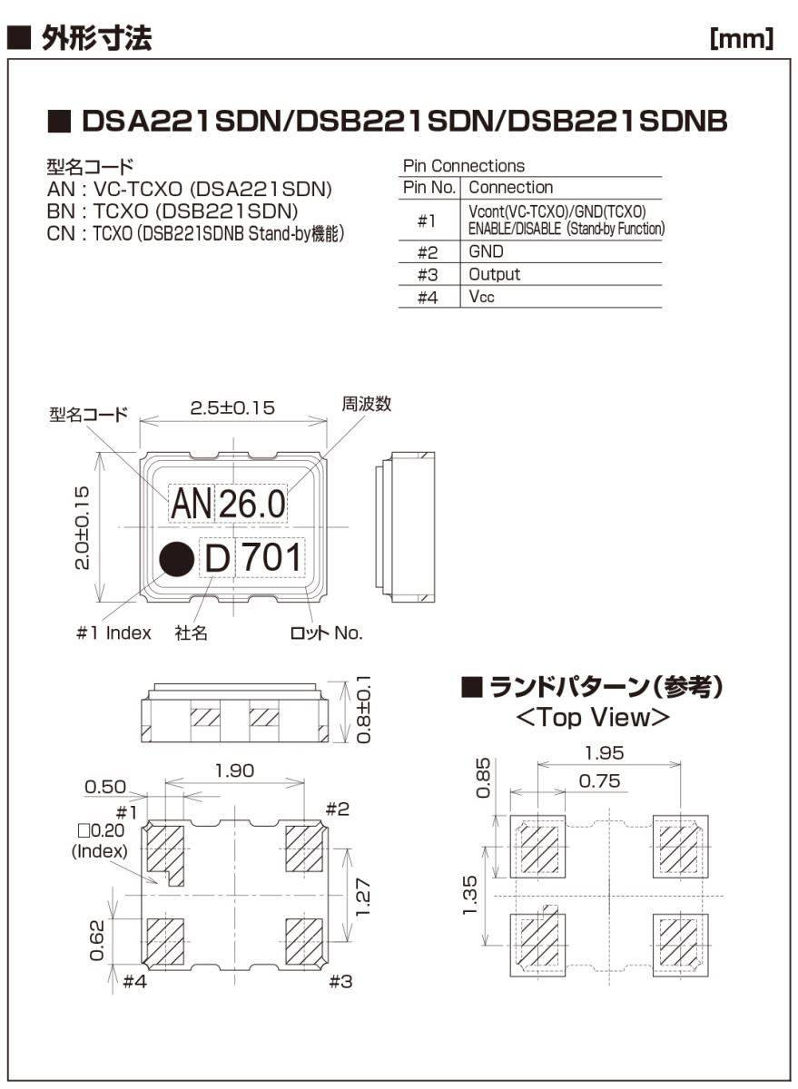 | 型名 | DSB221SDN晶振 (TCXO) | |||